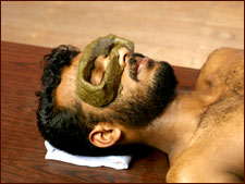 The patient is advised to lie on a special wooden droni with his neck and head comfortably placed. Then a